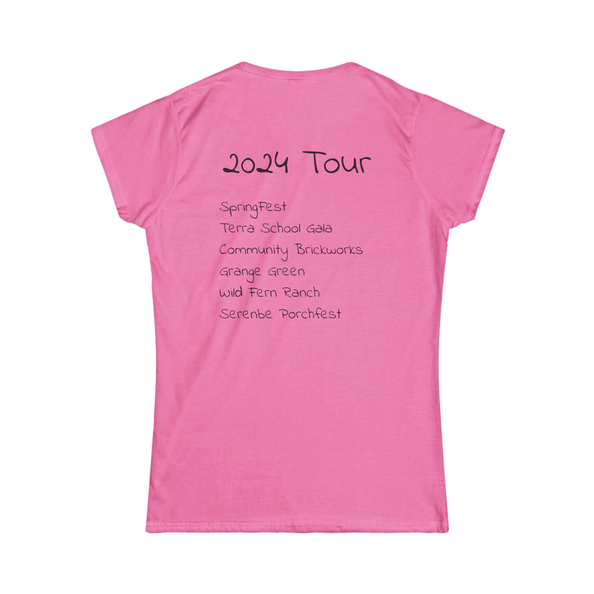 The woman’s softstyle tee is a more feminine take on the classic tee. The sleeves are shortened to reveal some shoulder. The fabric is 100% ringspun cotton for all solid colors. The shoulders are taped with twill to prolong durability. The collar seam is reinforced with ribbed knitting.